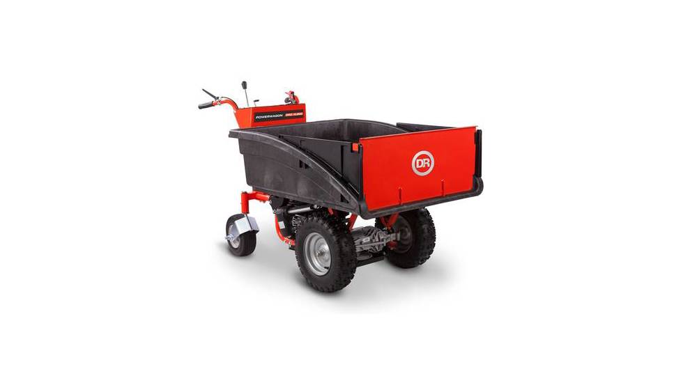 - Powered Dumping: With the push of a button, a powered Actuator tilts the cargo bed of the PRO XL for unloading. The steep 60° dump angle empties the bed thoroughly, minimizing the need for raking out materials.