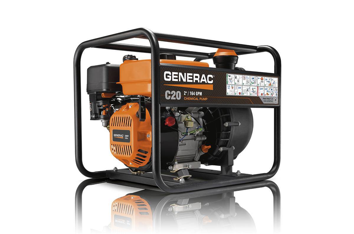 Generac’s C20 chemical pump features a sturdy design, simplified priming, fiberglass-reinforced components and carbon ceramic seals to support a variety of chemical pumping needs in almost any environment.