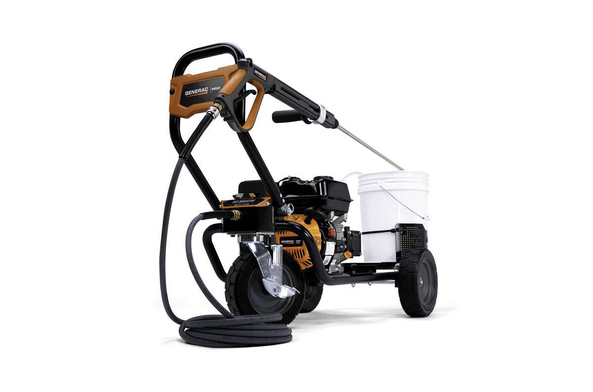Generac XC Series pressure washers are designed for the rigors of commercial pressure washer use. Built with a 3-wheel design that saves time by moving with you around the jobsite to prevent downtime. The XC Series also holds more, with an integrated 5 gallon bucket holder that can hold cleaning detergent or additional onboard storage for other tools or accessories. The unit is also designed to save space, with a folding handle bar and collapsible bucket holder that allows for a compact footprint during transport and storage. XC Series pressure washers deliver commercial grade cleaning performance that helps you complete projects faster and more efficiently.