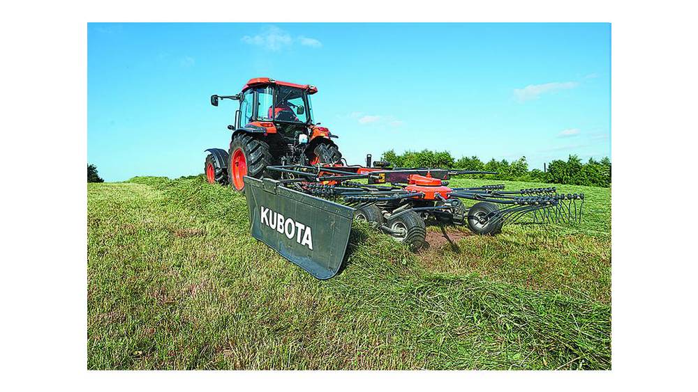 - FarmLine Rakes: Kubota's FarmLine rakes feature oil-immersed cam discs, guide rollers and tine bearings, making them low maintenance. All rakes are fitted with curved tine arms, to ensure a regular and even swath formation in all crop conditions. Additionally, the curved shape increases the tine working area as the rake is moving and allows a higher lift out of the swath, which is critical in high volume crops, ensuring a very uniform swath. Our expert knowledge in producing the right swath not only optimizes the capacity of the baler, but also increases the quality of the forage.
