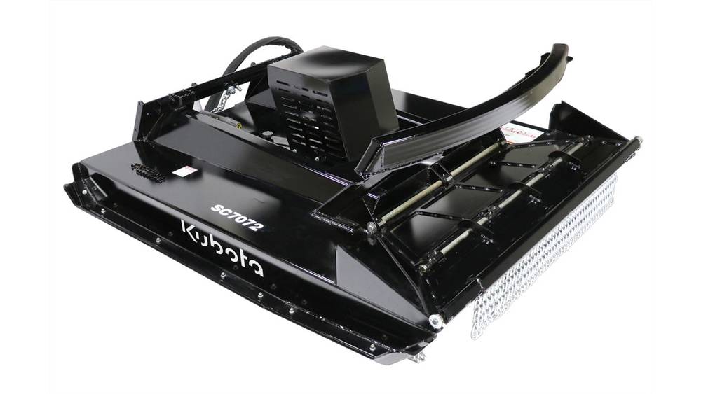 Kubota by Land Pride: Contractors and developers with extreme ground-clearing needs will easily eliminate brush and trees up to 7" in diameter with the SC70 Series Skid Cutter. The Kubota SC7072 is a heavy-duty skid cutter with a 7" cutting capacity and 6' width designed to make land clearing a simple and efficient task. The deck and side skirts are manufactured from 1/4" steel. The 3 piece deck design minimizes weld for added strength. The SC70 come with an optional case drain and optional motor pressure gauge. Standard safety features include front and rear chains, a pusher bar, and unique bi-fold door that covers the cutting chamber when not cutting in heavy brush. Only available through Kubota Dealers. Patent Pending.