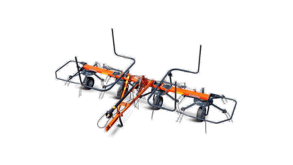 - Super-C Tine: The symmetric Kubota Super-C tines efficiently pick up the crop from two different areas. As it spreads the crop, the crop is inverted so the lower crop is placed on the top, giving a more even dry down. The crop is then spread evenly across the width of the machine for consistent drying. These tines are made of 0.39" shot-peened spring steel. Our spring coil diameter has a 20% larger diameter than conventional designs. This increases each tine service life, even when tedding heavy, high moisture crops.